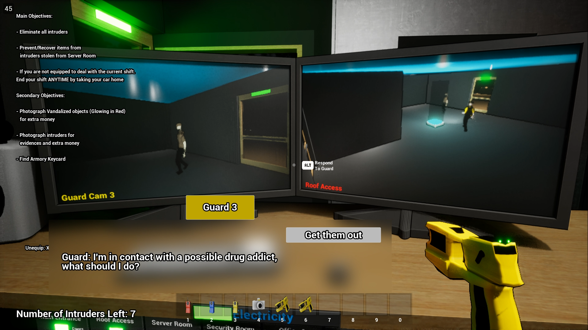 - Use tools such as tasers to handle intruders, or use door-locking mechanics to contain supernatural entities