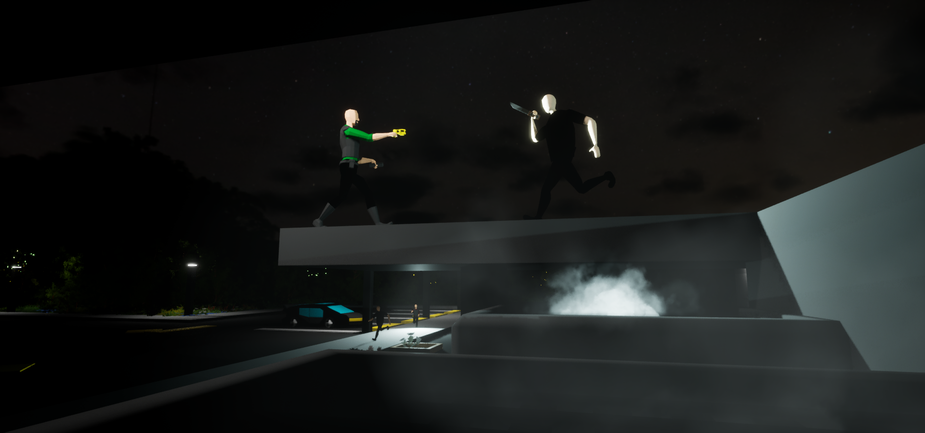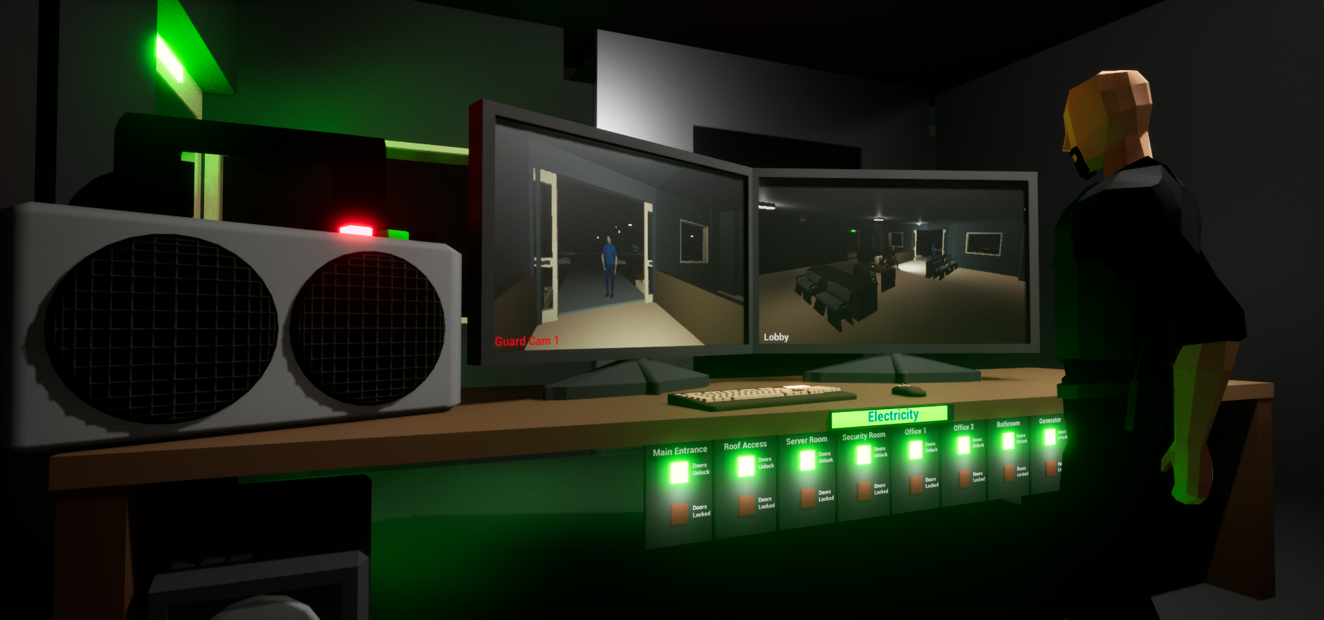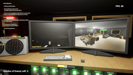 Eliminate all intruders by yourself or hire and command security guards to do the work for you as you sit in the security room monitoring the facility that the client has tasked you for.